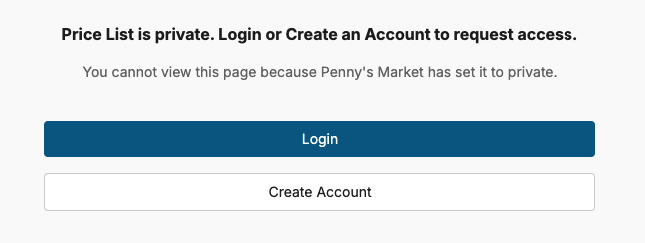 - Private - A customer must create an account and request access to view and place orders. After they register and click the Request access button, an email is sent to you to notify you about the request if you have the Price list membership request notification enabled, and to your customer to confirm that has been done. Click Allow access in the email to add the customer as a member to your private price list. Private price lists are typically used for wholesale sales channels, or other types of price lists where you need to control who is allowed to view and place orders.