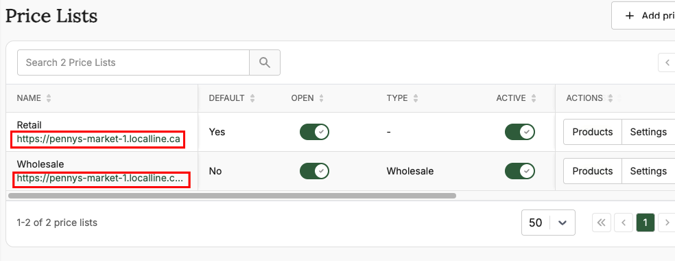 - [Required] Enter the Price list URL slug. This value is appended to your root Local Line store URL to provide direct access to a price list. It's best to keep this short but descriptive - e.g. "wholesale", "members", "restaurant"