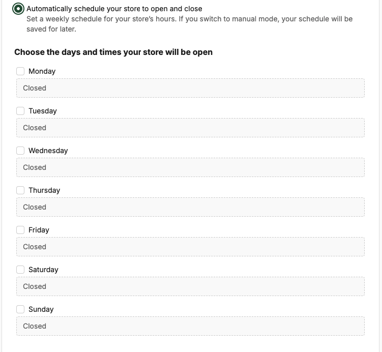 You can choose to manually control when your price list is open or closed (either in the open/close tab, or by using the toggle control in the price lists table), or create a schedule to automatically open and close the price list.