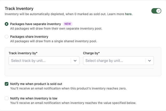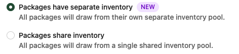 Depending on which option you choose, you will either have a single inventory level field for the product, or separate fields for each of the packages you create.