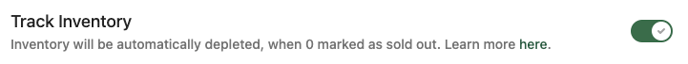 This option indicates whether you want to track inventory levels for this product. If this product is something you only have available in limited quantities and you want to ensure you can only sell as much as you have on-hand, you will want to enable this setting. When the setting is enabled, as customers place orders in your storefront, the quantity they order will be deducted from your available inventory until the available inventory reaches 0. Then, depending on the Show out of stock products setting (found in Storefront -> Settings), the product will either still be displayed and marked as sold out, or will no longer be shown in your storefront.