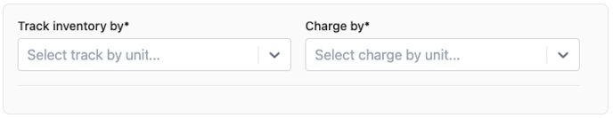 Once you have selected your options from the dropdown selectors, you can then select the units you track and sell by. If you choose the same option for both (i.e. Package/Package or Weight/Weight), then you will define a single unit. If you choose different options, then you will need to specify a unit for each.