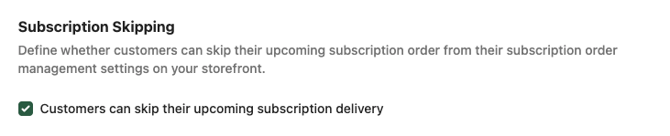 - In the Subscription Skipping section, check the box if you want to allow customers to skip their upcoming subscription delivery